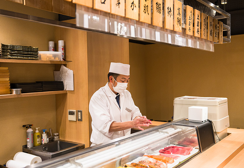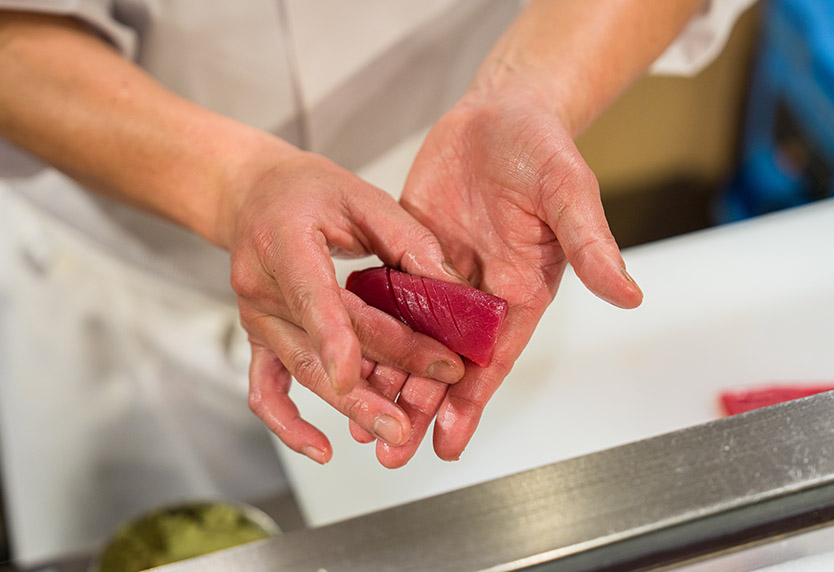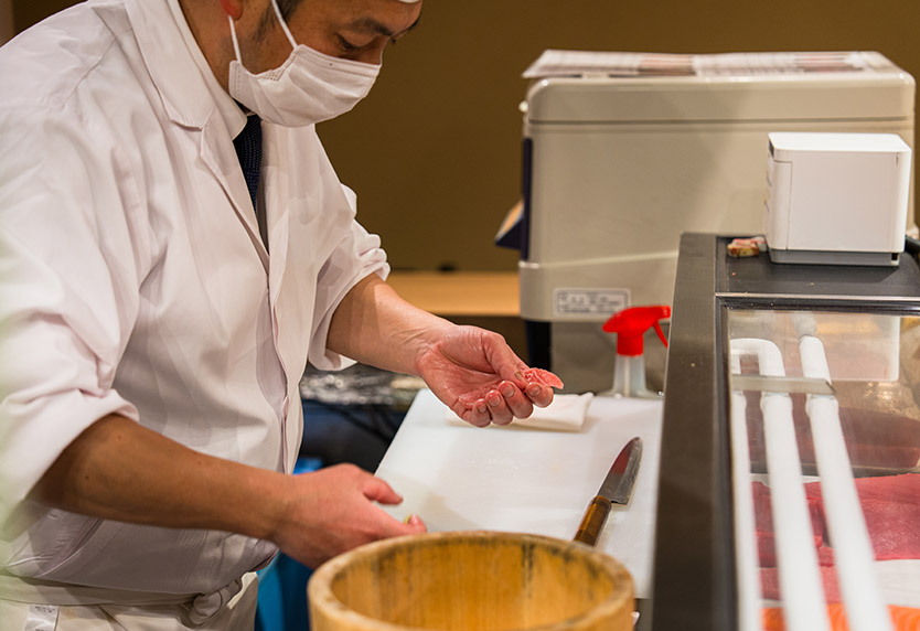 職人が状態を見極め、一貫ずつ丁寧に握ります。