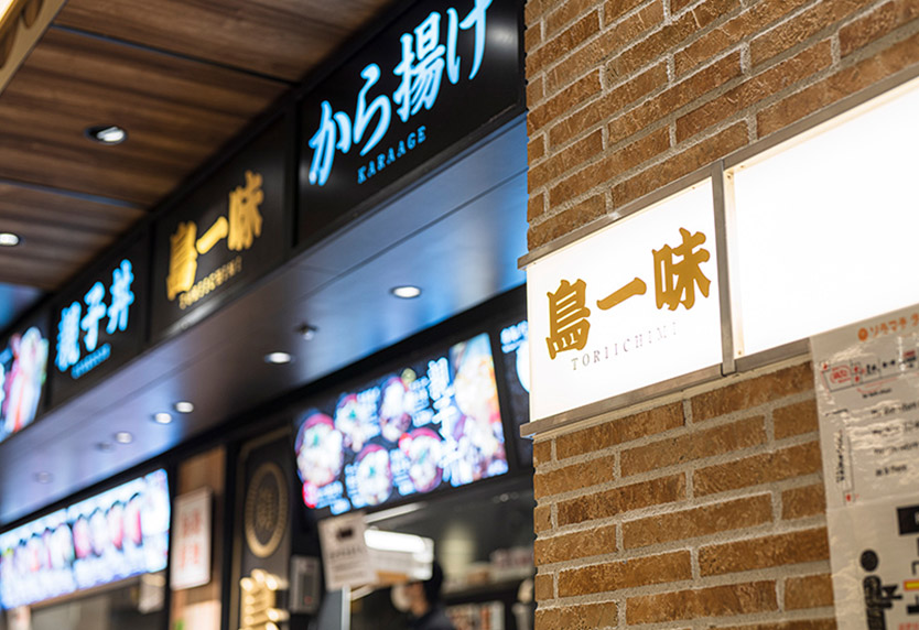 鶏カツや唐揚げなどのトッピングや、味の組み合わせなど、楽しみ方は様々。ソラマチフードコートの限定の店舗です。